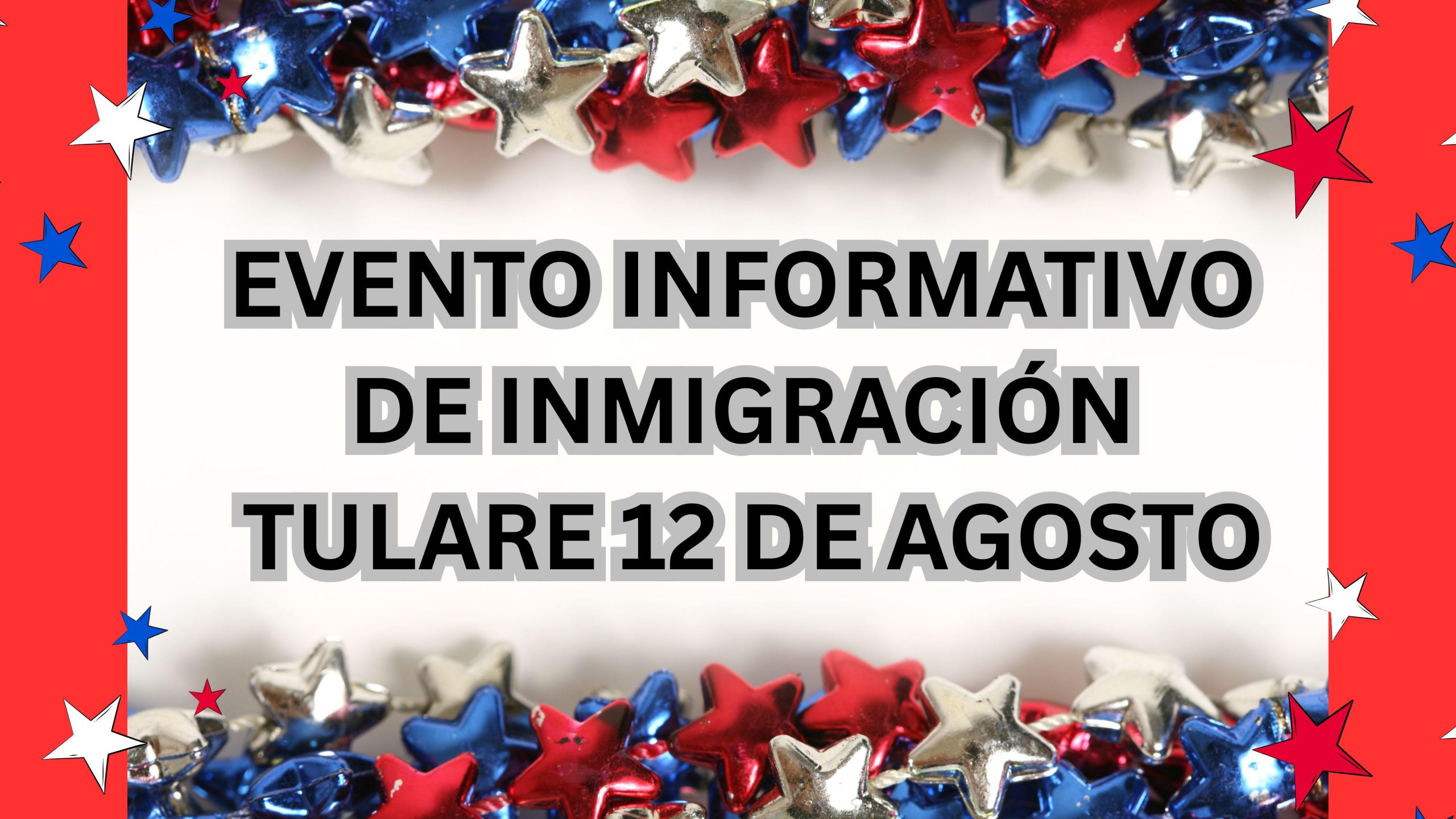 Evento Informativo de Inmigración en Tulare 13 Agosto Aug 13 9:00 AM - 12:00 PM Evento Informativo de Inmigración en Tulare 13 Agosto